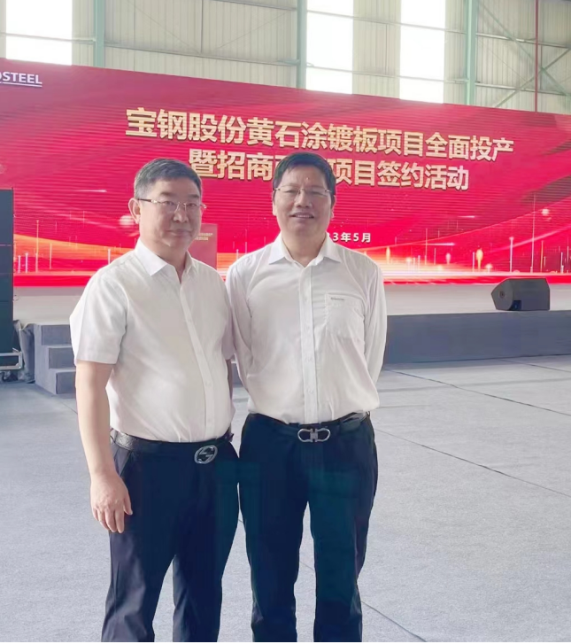 董事長劉國民和寶鋼股份黃石涂鍍板有限公司產(chǎn)品總監(jiān)顧進榮